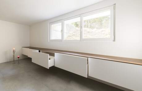 Ob ein massgefertigtes Sideboard fürs Wohnzimmer, ein grosser Esstisch für die ganze Familie, ein Bett für erholsame Nächte oder ein exakt abgestimmtes Badmöbel – wir verwandeln Ihre Vorstellungen in hochwertige Möbel und lassen Wohnträume Wirklichkeit werden. Dabei achten wir darauf, jedes Stück harmonisch in den Raum einzubetten oder gezielt als Blickfang oder Raumtrenner zu gestalten.