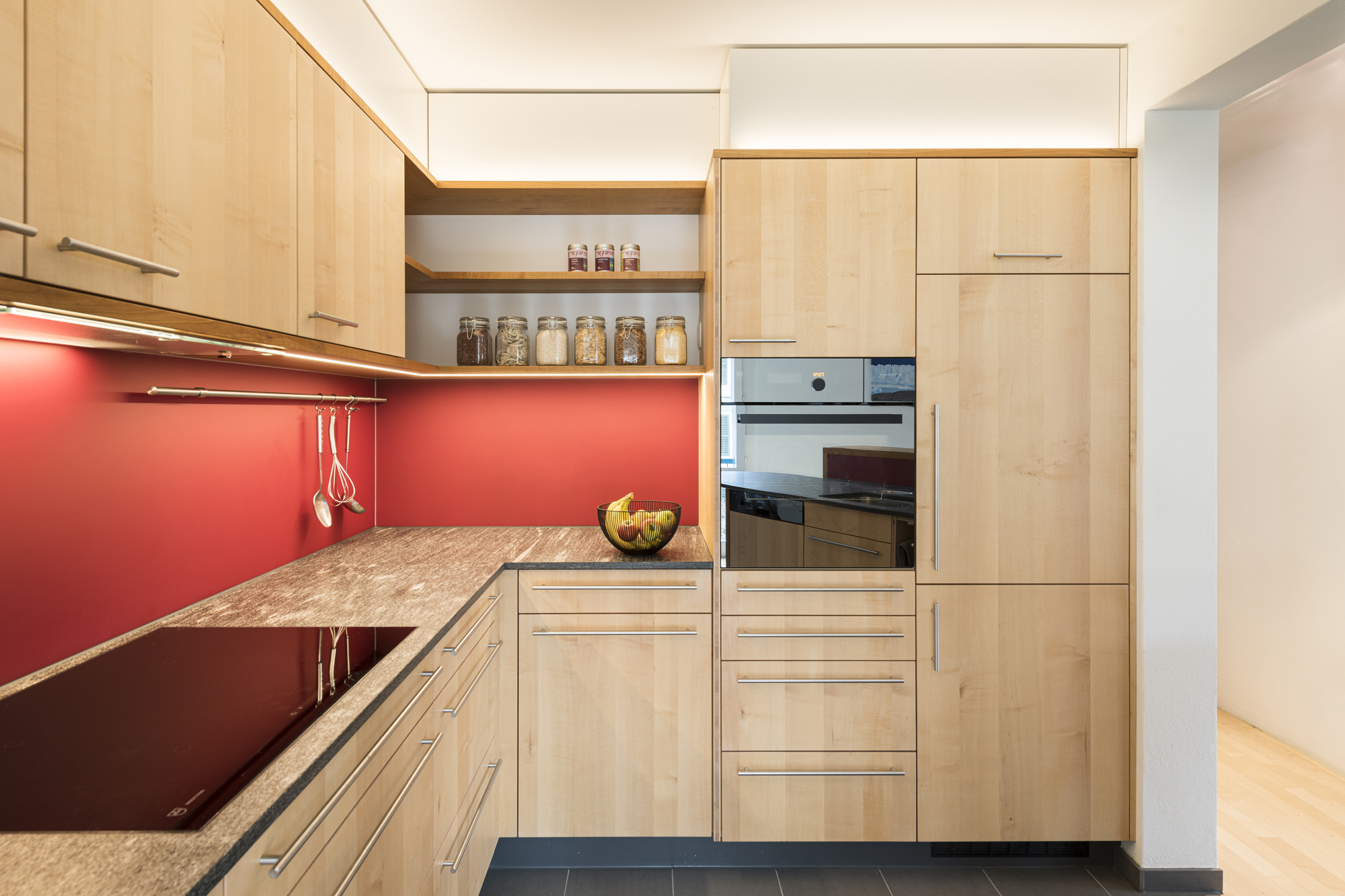 - Massivholzküche in Ahorn, weissgeölt/gewachst.