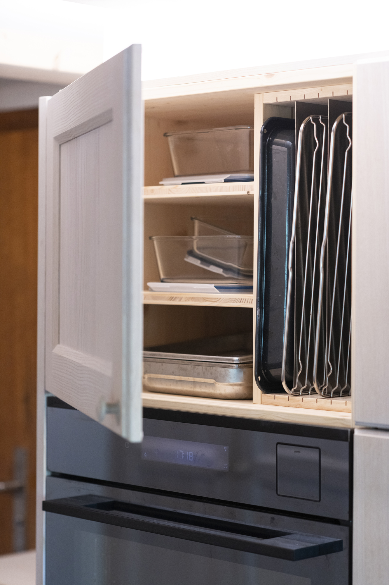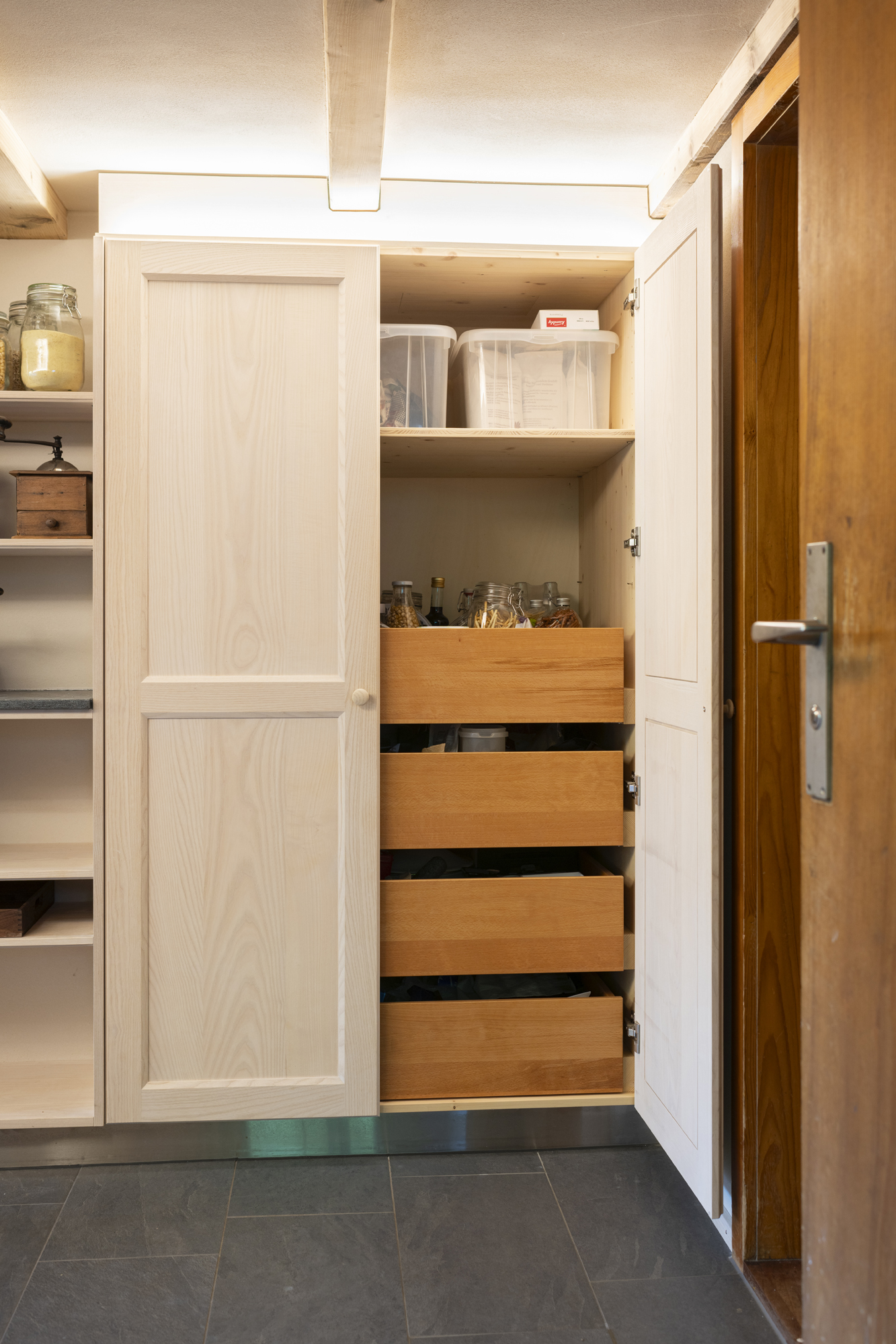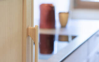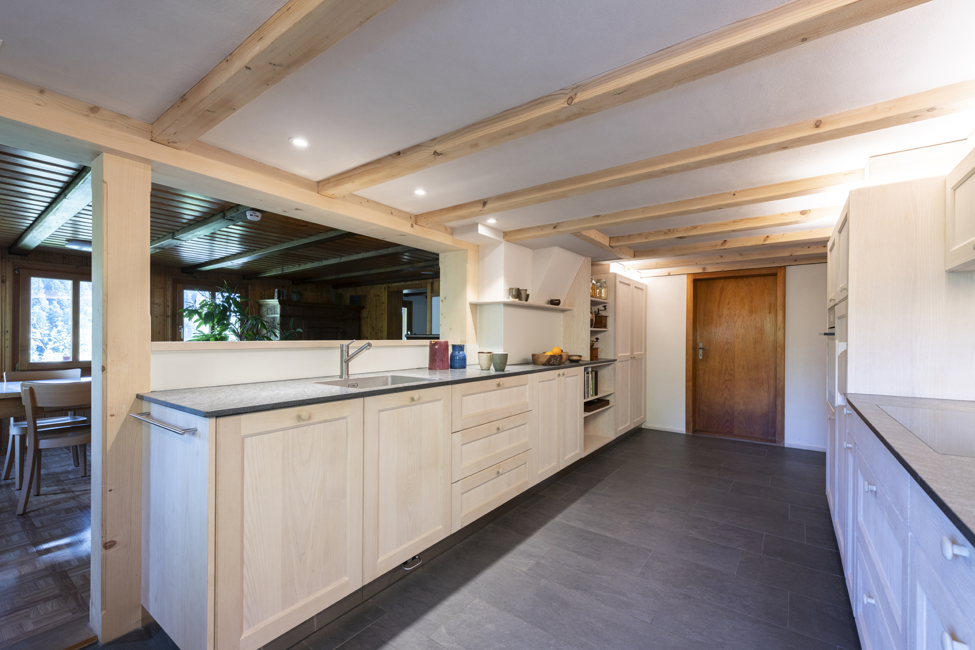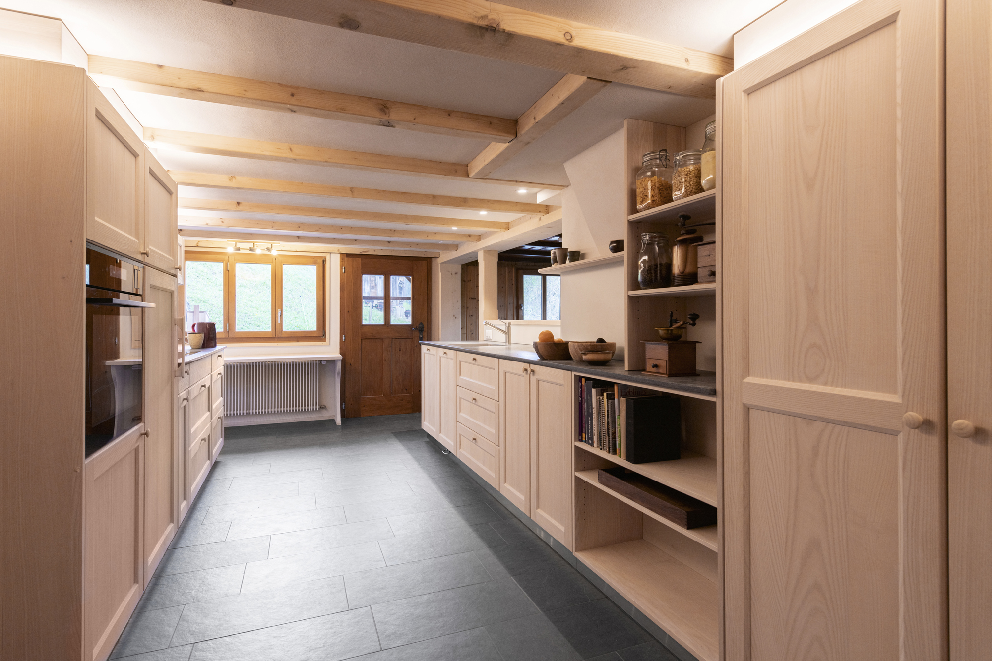 - Massivholzküche mit Fronten und Sichtteile in Esche, gelaugt und weiss geölt.