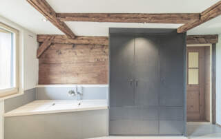 Das alte Bauernhaus wurde komplett umgebaut und die bestehenden Elemente ergänzen sich perfekt mit dem modernen Innenausbau.