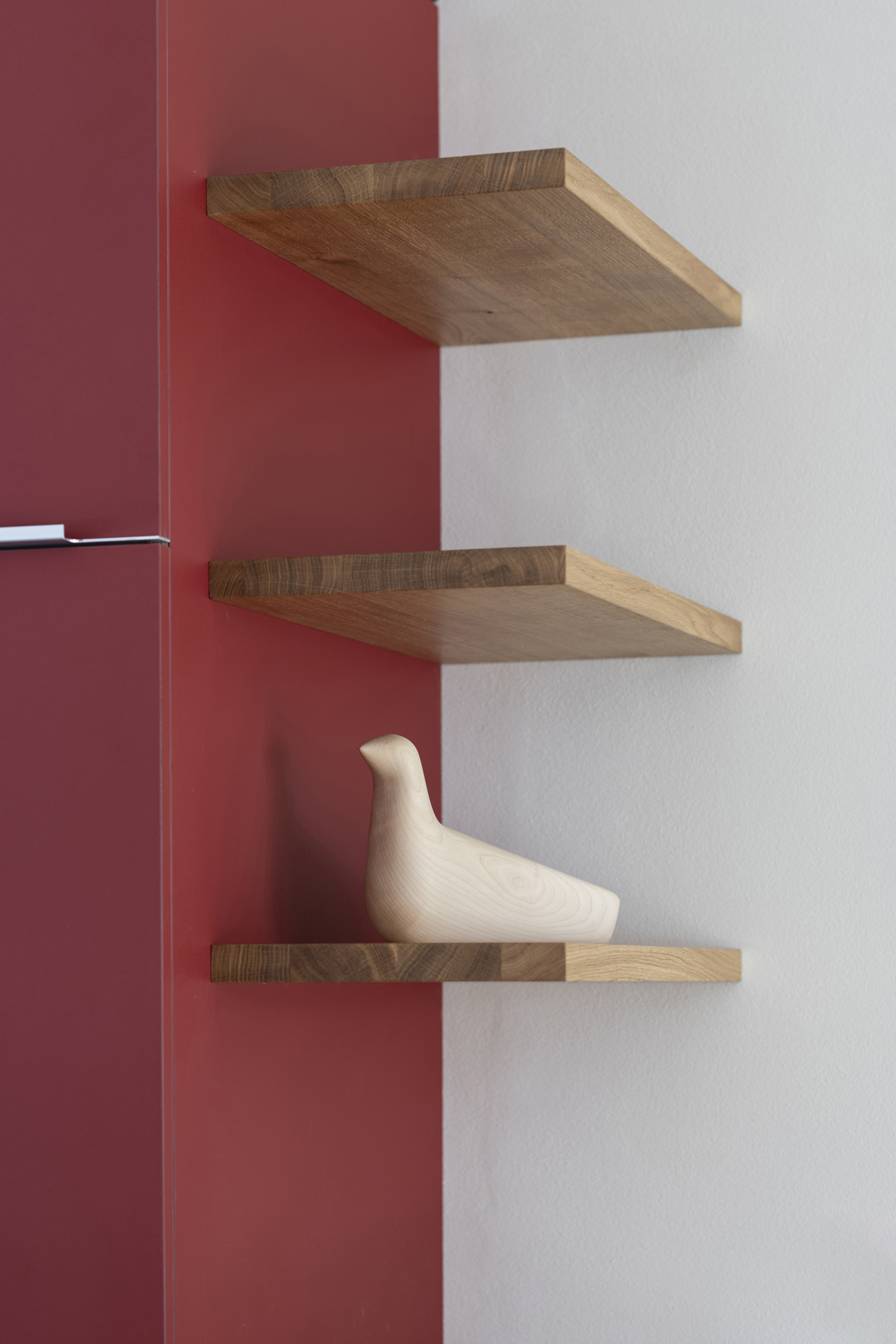 - Ablage, Ecktablare und Handtuchhalter in Eiche.