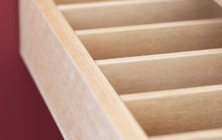 - Korpus und Tablare aus massiver Fichte, natur geölt.