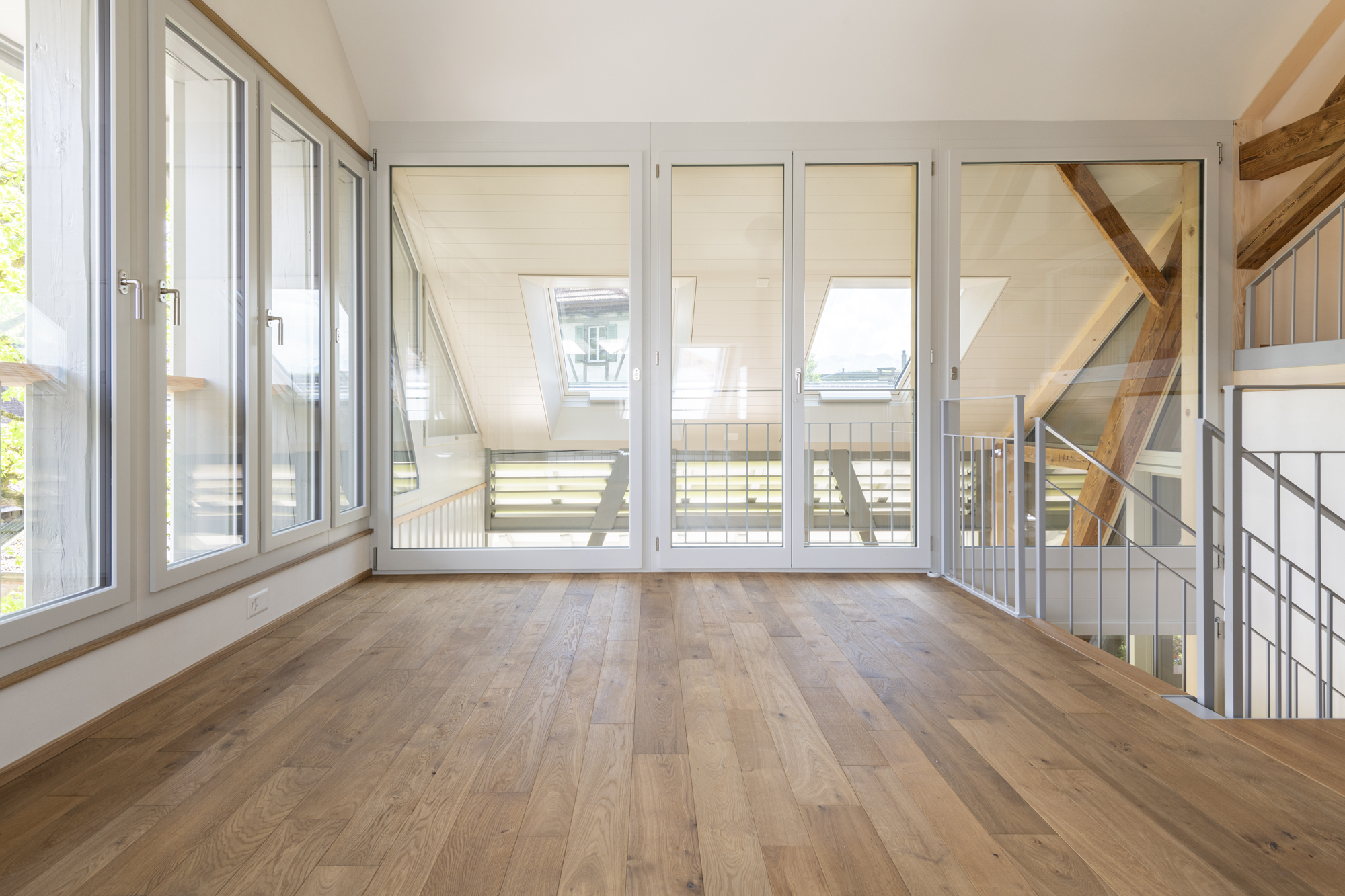 - Parkett Landhausdiele Eiche massiv, leicht gebürstet.